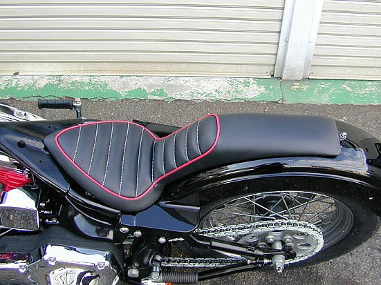 | 21世紀にもなって、ハーレーダビットソンを手に入れようなんて思うのはマニアの証拠です。ハーレーマニアと呼ばれる人種はノーマル車輌はいじられずにはいられません。ともかく他人とは違うスタイル、オリジナリティを追求して、カスタムに全力をつぎ込み多くの場合、周囲の忠告なんぞ聞く耳なしに自分の信じるカスタム道を激走するものです。 ある日、なんの前触れもなしにふらりとシックスモーターサイクルにやって来たオ−ナ−は正にそんな人でした。 元々このソフテイルはフラットフェンダー仕様の70年代風ライトカスタムが施された状態で売られていたのですが名古屋から大阪に転勤で来たオーナーは、何故かそれをベースにして、ぐんと現代的なアーバンチョッパーへのカスタムをオーダーしたのです。 スタイルのうえでの大きな違いはリアまわりの処理でしょう。力強い走りを信条とする21世紀チョッパーはスイングアームのある車種がメインで、それに被さるFXスタイルリアフェンダーが特徴です。このタイプのフェンダーには付加価値がありまして比較的積載量が多くとれるというものです。そう、オーナーは大阪に来て間もないのにチョッパーだけでなく彼女もゲットしていたのです。すばらしいマシンに良い女性、男のロマンですね。2つ同時に手に入れるなんてうらやましいかぎりです。私情が入ってきそうなのでクールに説明を進めましょう。 ストラットと一体になっているフェンダーはワイドタイヤ用なので、シックスモーターサイクルの存在価値の最後の砦でもあるナローなリアタイヤに合わせて幅ツメ加工を施し、それに渋いデュオテールランプを組み合せ。リアに合わせてフロントはGMA製のナロートリプルツリーに19インチのホイールのセットアップでバランスを取り、スポーツスタータンクとブラックペイントされたショットガンテーパードマフラーでスタイルを決める。普通にさりげなくカッコイイチョッパーに仕上げました。 さて、めざとい人は気が付いたかも知れませんが、フェインダーにポツポツと開いている穴は何だと思いますか。ウィンカーの穴ではありませんよ。実は彼女と2人乗りツーリング時に使用するキャリアを取り付けるためのものなんです。キャリアも当店で製作したのですがネット上でもモザイクが必要なぐらいのダサイシロモノ。アーバンなイメージからはほど遠いカッコ悪いデザインのキャリアになってしまいました。 そしてなんと、カスタムが完成した途端にオーナーは仕事の都合でまた名古屋に転勤という事態に。しかし、彼女とは無事結婚して夫婦になりましたので名古屋で仲良くダサキャリアを付けて2人乗りツーリングしていることでしょう。名古屋近郊在住の方、必見ですよ。 ちょっとした演出でとっておきのチョッパーに変身してくれるハーレーダビットソン。あなたも是非、シックスモーターサイクルをお試しあれ。 |