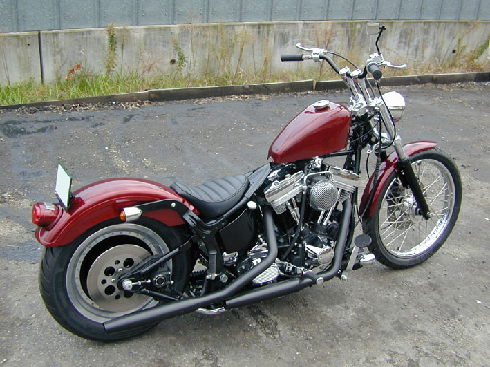 1 -スポーツスター・タンク 2 -39φナローフォーク 3 -21インチホイール 4 -6インチライザー 5 -ロウズ・スーパーバー 6 -フェイク・スイッチ 7 -フェィク・メータークランプ 8 -ONE OFF・ソロシート 9 -FXタイプ・リアフェンダー 10-デュオグライド・テールライト 11-エンジン・サンブラ/ペイント 12-キャンディ・ペイント |