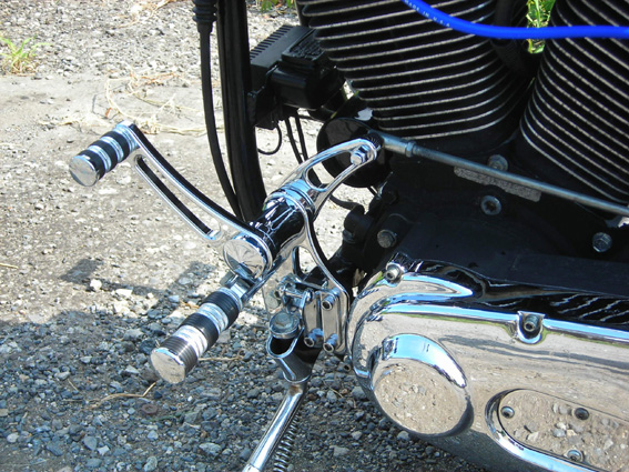余白 | 鏡面仕上げのビレット反射も眩しいフォアード・コントロールはこのスタイルのポイントではありますが2つ理由で当時の我々を悩ませました。1つは見た目のとおりの高価なプライス。ビレットパーツで構成されているので学生には高嶺の花でした。もちろん今回はオーナーは立派な社会人、懐具合もそう気にする必要もなく、よりエレガントなデザインの大御所ネス製をセレクト。2つめは平均的な日本人には酷なポジションであります。ハリウッド俳優ならともかく脚の短い市井の者にはリーチが足りません。が、これも選ばれし体格のオーナーは楽々クリアー。今回は事なきを得ましたが、想いだけではどうにもならない体格からくる制限がドラッグバーとフォアコンの組み合わせのこのスタイルを乗りこなすうえでの難関なのです。 |