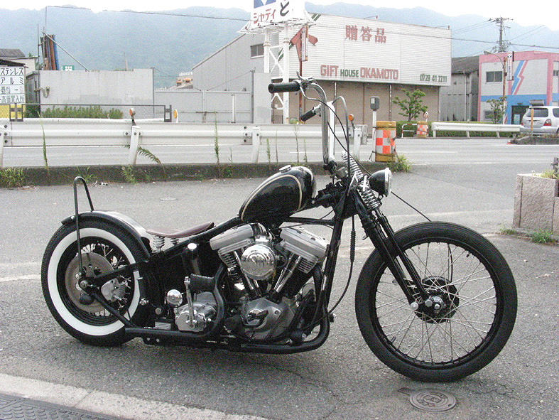 1-F/21インチ 2-パウダーコート/リム 3-エイボンMK-/タイヤ 4-F/16インチ 5-パウダーコート/リム 6-コッカーホワイトウォール/タイヤ 7-74スプリンガー 8-ドラムブレーキ 9-4.5インチ/ヘッドライト 10-パウコ製/エイプハンガー加工 11-ピーナッツタンク/トンネル加工 12-SUキャブ 13-ONE OFF ターンアウトパイプ 14-キックキット 15-ゼロ製/本革シート 16-5インチ/フラットフェンダー 17-ONE OFF シッシーバー 18-ONE OFF ミッドコントロール 19-サイドナンバー 20-ブラックパールマイカ/ペイント |