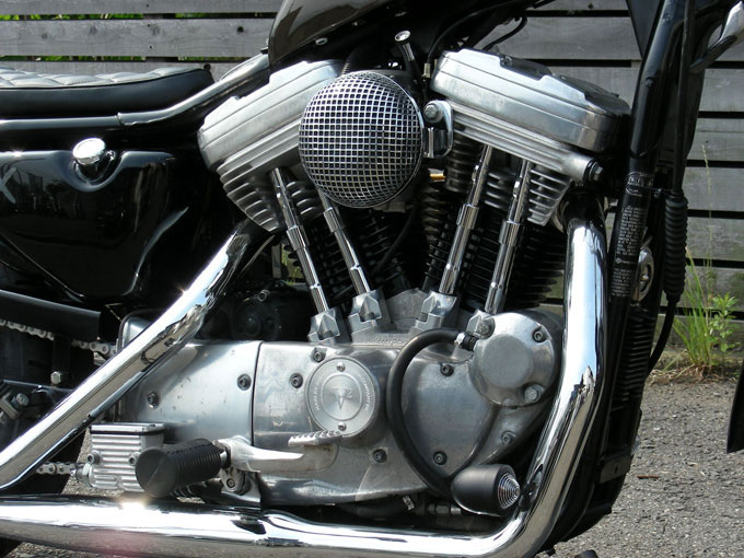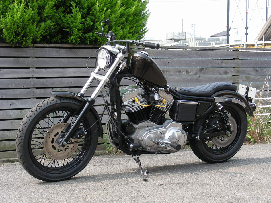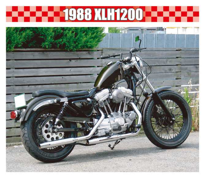 ベースは排気量1200CCで、シックスではイメージ的にアイアンショベルにも通じる渋さからプッシュしている、アルミ地エンジンにアール垂れファンダーストラットの組み合わせの1988年式スポーツスター。フレームやフロントフォークなど骨格にはまったく手を加えずに各部のバランスを見直すことによりスポーツスターの本来持つコンセプトの一つである軽快さをより強調した美しいフォルムとナローなボディが印象的なシックステイスト満載のライト・チョッパーです。 |