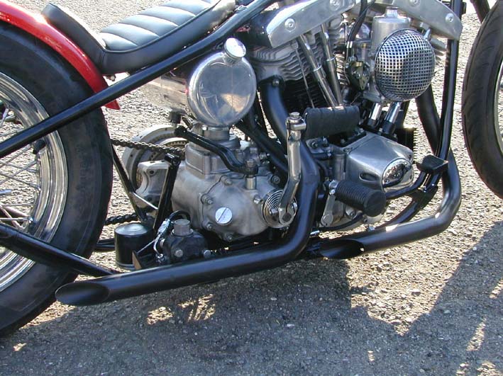 シックスモーターサイクルでは定番のミッドコントロール。 そんな訳で「いかにも造ってみました。」的なアクの強さがないので,当店ではこの手の小技を利かした目立たない小さなパーツの研究に余念がありません。 |