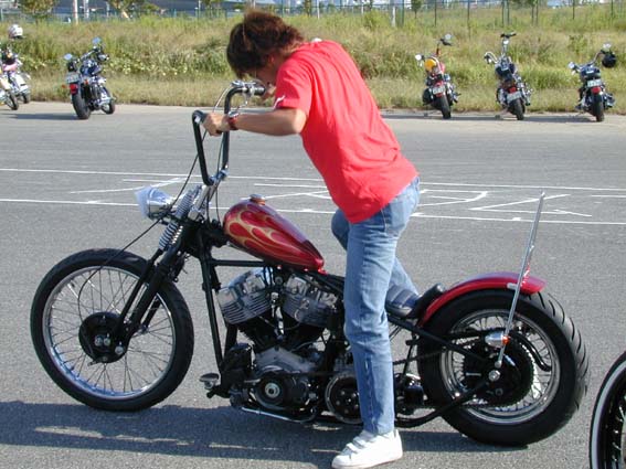 このジャンボリーで納車になりましたショベルチョッパーを始動中のオーナーです。