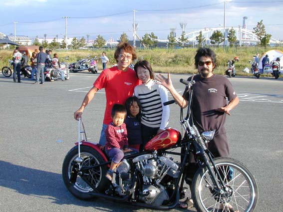 ちなみに幸せ家族の隣で怪し気なポーズをとっている不審人物が製作者です。シックスモーターサイクルのスタッフなのでお立ち寄りの際は勇気を出して,こわがらずに声をかけて下さいね。 |