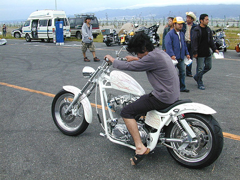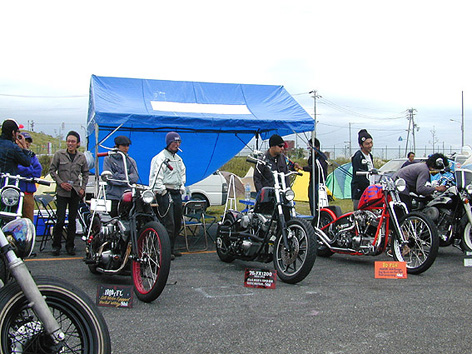 ぞくぞくとブースの前にシックスモーターサイクルチョッパーが集まって来ました。一応、お店の宣伝も兼ねていますので交通費のかからない近場のイベントは貧乏ショップにはありがたい。