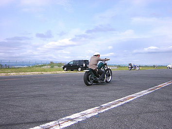 小さく写っているのは、はずかりやさんなのでカメラから逃げるようにアクセルを吹かし走り去っているからの883ccのエボ・スポ・リジッドチョッパー。