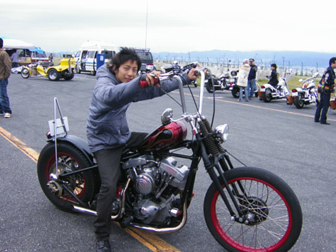 まだハーレーは所有していないのですがチョッパーの試乗で大喜びの模様。チョッパー乗りになる日は近い。