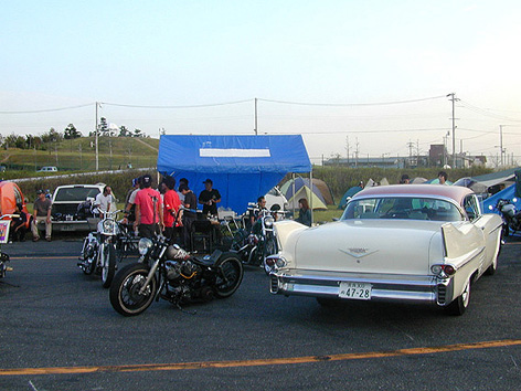 初日の午前中はあいにくの雨でラストイベントなのに大丈夫かと気を揉んでいましたが午後から天気が回復すると、爆音を響かせながらぞくぞくと参加者が来場、不安は杞憂に終わり写真のような美しいサンセットシーンも見ることができました。