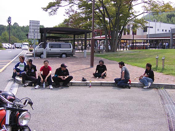 こんな感じで我々は休憩が多いのと一度バイクを降りるとつい喋り込んで出発が遅れてしまいなかなか目的地に着きません。超スローペースな行程がシックスモーターサイクル流です。 余白 津山の手前の佐用インターで降り、出口すぐのボロい食堂で昼食タイム。いつも利用する食堂なのですが、注文してから料理が出てくるまでが遅くて有名で、ここで2時間くらい喰らいました。