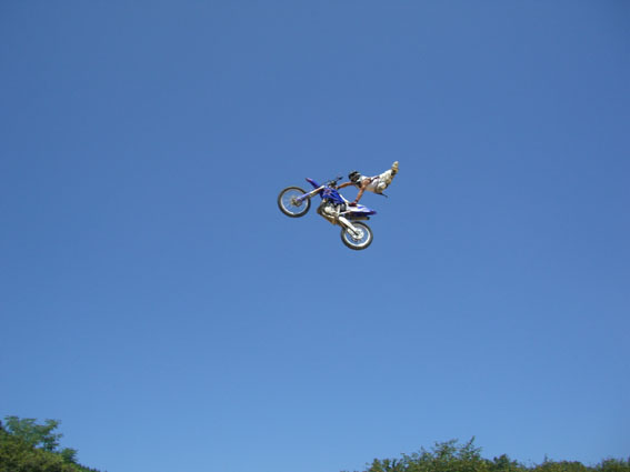 会場に着いて真っ先に目に入ってきたのは広場にそびえ立つFMX用の人工山。そう、このミーティングはハーレーに限らずあらゆるバイクの楽しさを表現するイベントだったのです。トライアルにドラックレース等々、バイク競技が目白押しで、あのバイク映画の金字塔「ON ANY SUNDAY」を生で体験できる素晴らしいイベントとでも申しましょうか。客層も子供から年輩者まで多岐に渡っており、それだけ地元の理解を得た催しであり、ハーレー業界だけの視野の狭い思考ではなくマクロ的なバイクライフとの関係を考える場であり、またバイク趣味人としても充分楽しめる内容で機会があれば是非参加することをおすすめできるミーティングです。