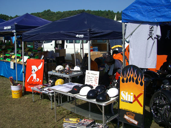 夏の猛暑まだ残る9月、四国は香川県土器川河川敷公園で開催された「こんぴら」改め「2006さぬきバイカーズミーティング 7th」にシックスモーターサイクルとして出店しました。ここのところミーティングにショップとしての参加は忙しさにかまけてサボっていましたので当店としては久しぶりのイベントになりました。またこの「さぬき」には全く初めての参加ですのでどのような内容のイベントなのか期待もありました。
