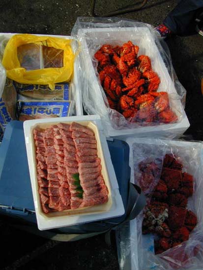 そんなわけで当店のもてる限りの手を尽くしまして北海道直送の海の幸をふんだんに取り寄せ、見た目は悪いが味は最高のいつもの大量の焼肉と合わせましてバーベキューパーティを開催しました。