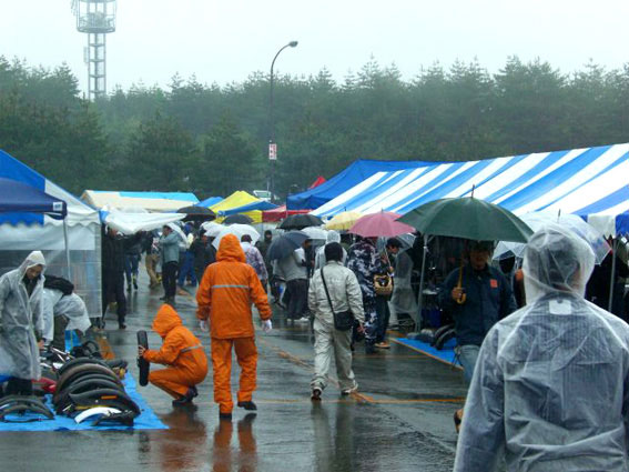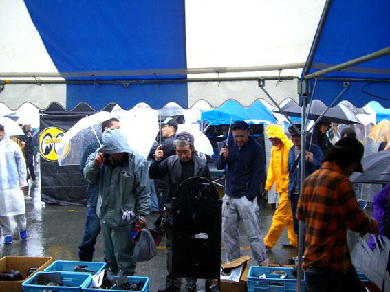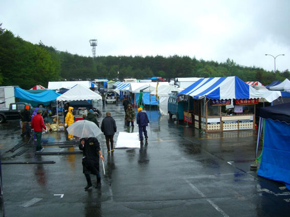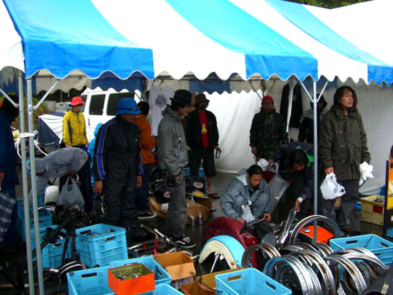 結局最後まで雨が降り止むことはなく、30分早く開場したので終了時間も30分繰り上げて2時半にA-DAY2010は終了しました。さすがにこの時間になると粘っているお客さんも少なく売れる気配もないので、出店者の皆さんはややフライング気味に撤収準備です。シックスも去年の苦い教訓を活かして今回はすぐに大阪に帰ることに。 |