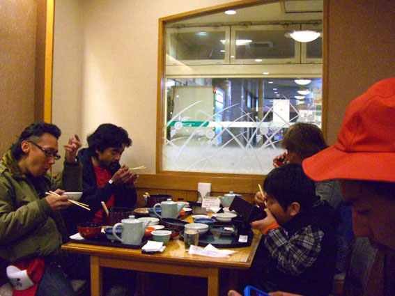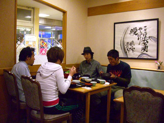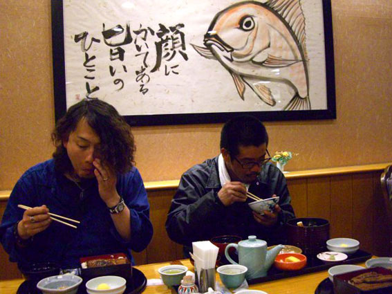 帰路は来る時は別ルートで東名高速道路を大阪に向かいます。大阪に近づくにつれて雨だけでなく風の半端なく吹き荒れてきましたが、クルマなのでまったく気になりません。天気に左右されない、これがクルマの良いところですね。バイク組の面々は無理にバイクで帰らなくて本当に良かったと安堵の表情だったのはいうまでもありませんでした。写真は途中の浜名湖サービスエリアで名物のウナギ料理で打ち上げをしている様子です。3000円ほどの高級なウナギでしたが、勘定はシックス持ちなのでスタッフ心置きなく極上の味を堪能しました。疲れきった身体には滋養の高いウナギは最高です。この後は何事もなく10時過ぎには大阪に到着しました。 |