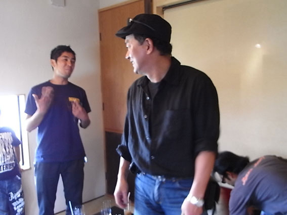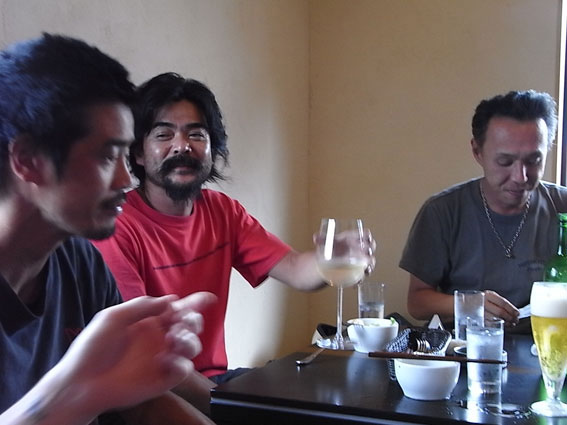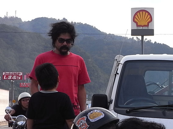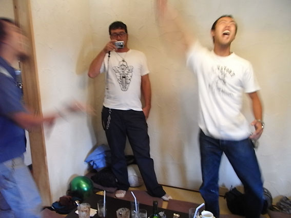 シックスメンバーにとって懸念の「シックスじゃんけん」が終われば、この「これさぶ」は本当に安心して楽しめるイベントになります。レストランからほど近い、毎年恒例の湯郷温泉に浸かり心身共にリフレッシュすれば、もう怖いものはありません。そして、温泉近くのガソリンスタンドでみんなが給油中に遅刻3人組の1人である私がULで合流。確かによく考えてみるとこのタイミングでの登場はなんとなく怪しいですね。断っておきますが、仕事で遅れたのは本当ですよ。後の2人はというと、この時すでに会場に直行していたのと、もっと遅れて日暮れ近くになって会場入りしたのがおりました。 |