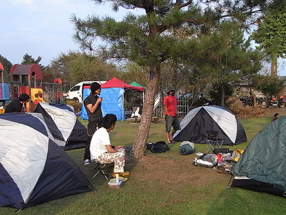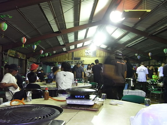 何事もなく会場に到着。さっそくテントを張り夕食までの時間をくつろぎます。この何もしない時間というのはミーティングでは貴重な時間ですよね。メンバーも全員揃い会場内にあるレストランでバーベキューとなります。シックス組は、この後に控える惨劇を知ってか知らずかテーブルではしゃぎまくっていましたが、今考えるとあの時が一番楽しかったなーと思いますね。諸般の都合でこの日のレポートはここまでとなります。 |