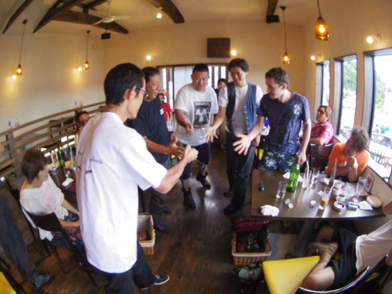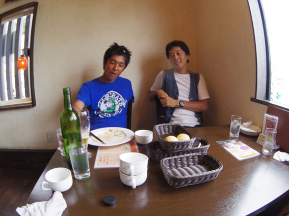 | ついにその時が訪れた。美作インターからほど近くの「ポナペティ」に到着です。途中の高速道路でショベル乗りのトミー君がお情けの車間距離違反で御用となるハプニングがありましたが、とにかくランチを心していただきます。ここのランチはとても美味しいのですが食事代がジャンケンで負けた者持ちと考えると、とても素直に味わえません。食後のスィーツを頼むのもみんなの顔色を伺いながらのどきどきもんです。ぜひ次はジャンケンの心配のないプライベートでゆっくりと堪能したいと思います。 食費の合計は2万8千円となりましたので、ここは少しでも負けた人の負担を軽減するために2万円と8千円という2人負けのルールに。それぞれ自分が負けるかも知れないという思いがありますので誰も反対などしませんでした。今回は私もあわや負けるかもという危ないところまでいきましたが、結局ジャンケンで負けたのはジンクスのとおりに本日納車であったヤマザキさんとクラ君でした。やはり、ジンクスというものはそのようになるから怖いですねぇ。シックスメンバーで金銭的に余裕のない人は「これ寒」に参加する日に決して納車をしてもらってはいけません。8千円負けとなったクラ君は日帰り組だったので、そのままうなだれて大阪に帰っていったのでした。 |