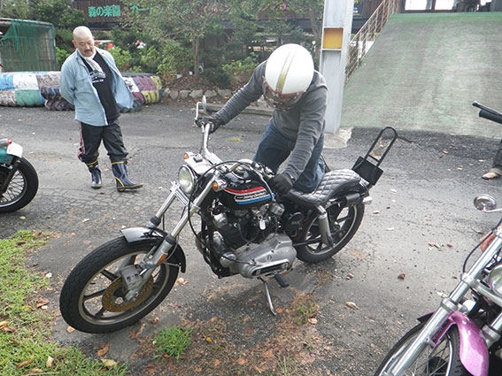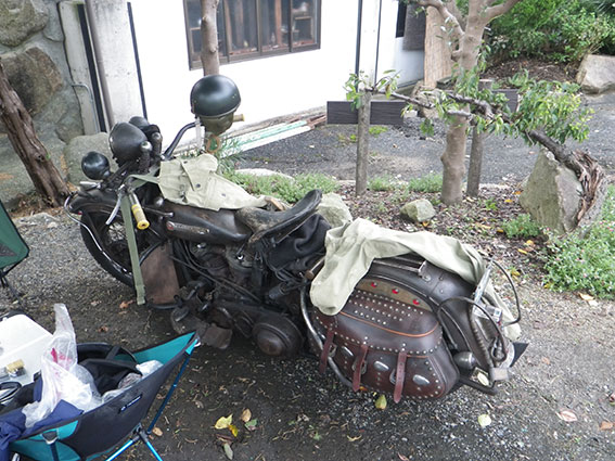 一晩嵐の中に置きっぱなしにしていた旧車は朝からご機嫌斜めのようすで中々エンジンに火が入りませんでしたが、何度かキックを踏むうちに無事に始動できました。天気も良いので中国道の宝塚の渋滞をさけるためにも早めに退散しようと会場を後にしました。