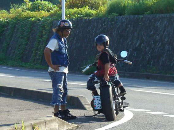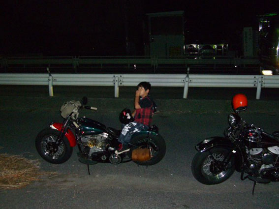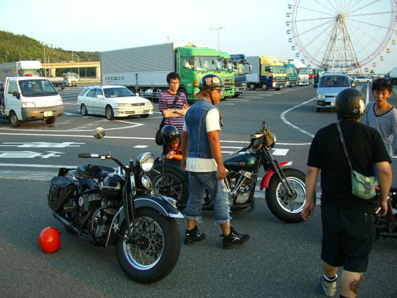 | 道中は何の問題もなく順調そのもの。淡路島のパーキングで同伴のクルマで仮眠をとったお子様な彼も見事復活、バイクの人となりました。途中ガソリンスタンドに立ち寄った程度で、約3時間半後の8時半には無事に会場入りを果たしました。 | |