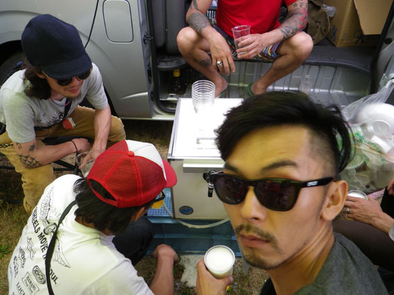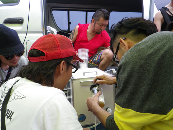 | その時分、大人たちが何をしていたかというとブースの奥に集まりシックスの秘密兵器であるビールサーバに群がっておりました。この機器は意外と泡とビールとの調整が難しいのですが、ノンベエの煩悩のなせる業か前回のA−DAYの頃よりも注ぎ方が格段にスキルアップしており、みなさん営業そっちのけでビールで盛り上がっていました。 | |