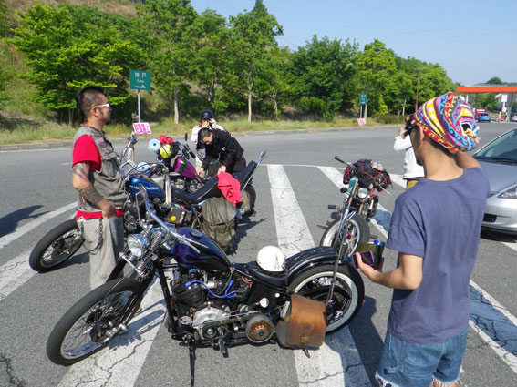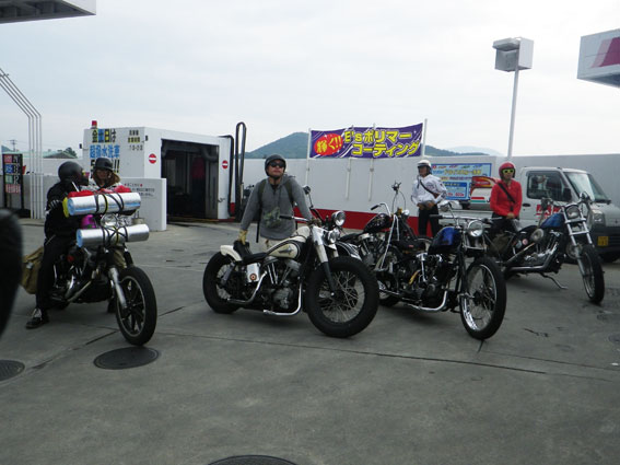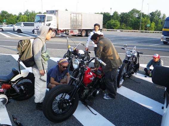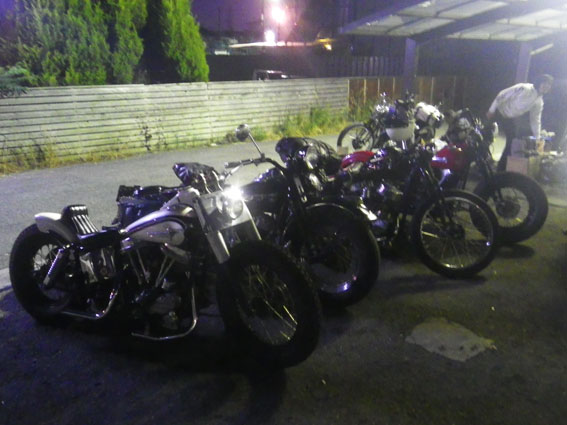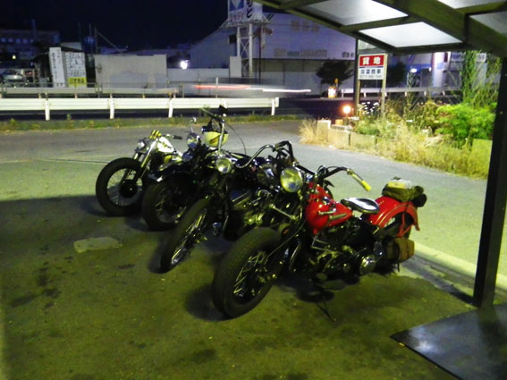 帰りのルートは行きの教訓を生かして迷うことなく、瀬戸大橋経由の山陽道ルートを選択します。瀬戸大橋は雄大なパノラマが楽しめて良いのですが、岡山の倉敷から兵庫の三木までの行程が距離があるので、高速走行時の旧車独特の絶え間なく続く振動のため体力的には疲れるルートでもあります。しかし、半世紀以上もの旧いバイクがガシャガシャ鳴らしながら走るのは気分的には楽しいものがあります。「走りきった」という気持ちを実感できますね。さらに宝塚付近でお約束の十数キロの渋滞の試練をくぐり抜け、日が落ちる寸前の午後7時頃には無事にシックスに帰ることができました。 |